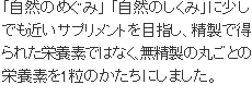 食べ物でつくった無精製栄養素(ホールフード)に、植物の標準化エキスをプラスしたサプリメント